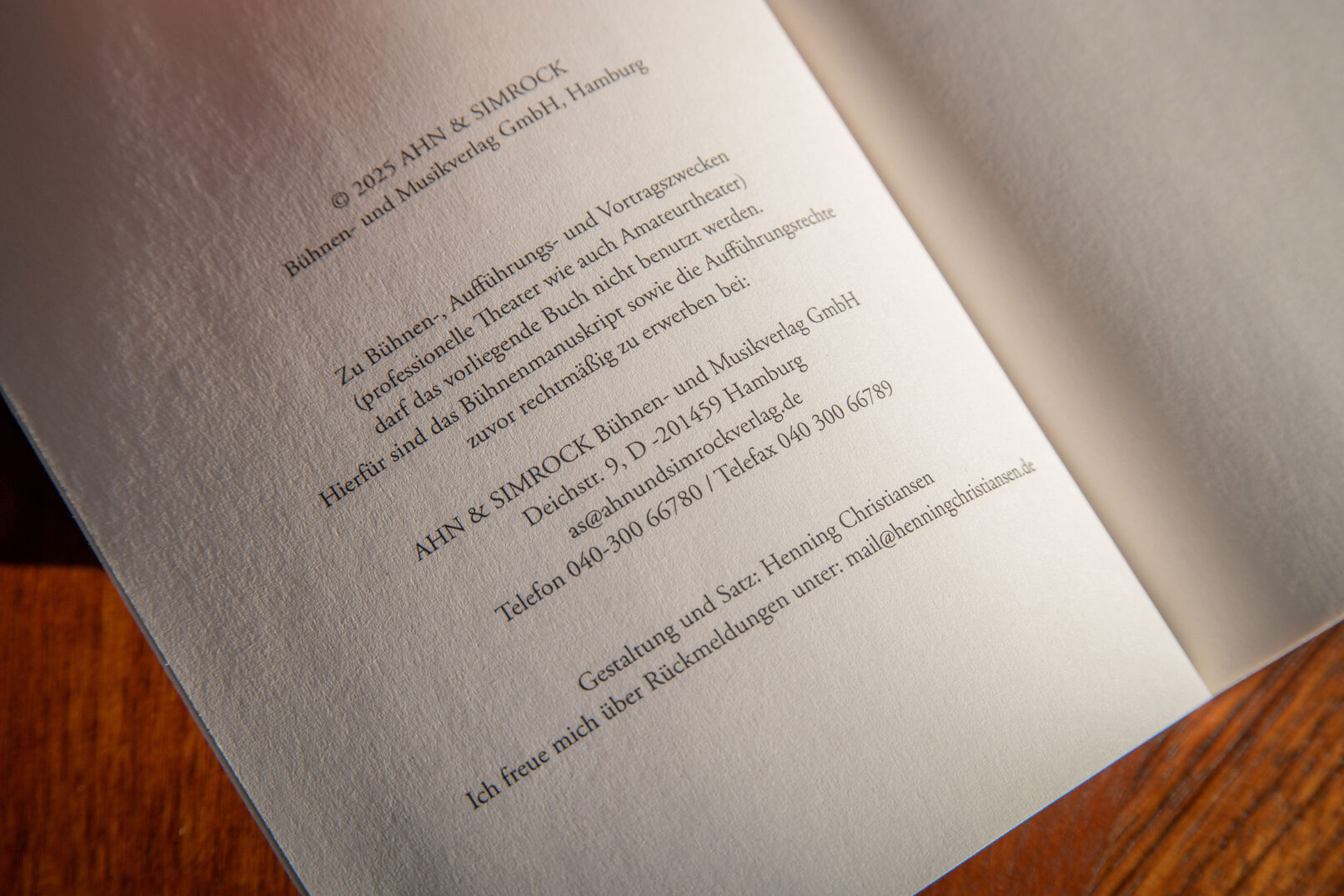 Dieses Büchlein meines ersten Theaterstücks habe ich selbst produziert, ich verkaufe es für 5,- Euro + 3,- Euro Versand. Schickt mir einfach eine E-Mail: mail@henningchristiansen.de