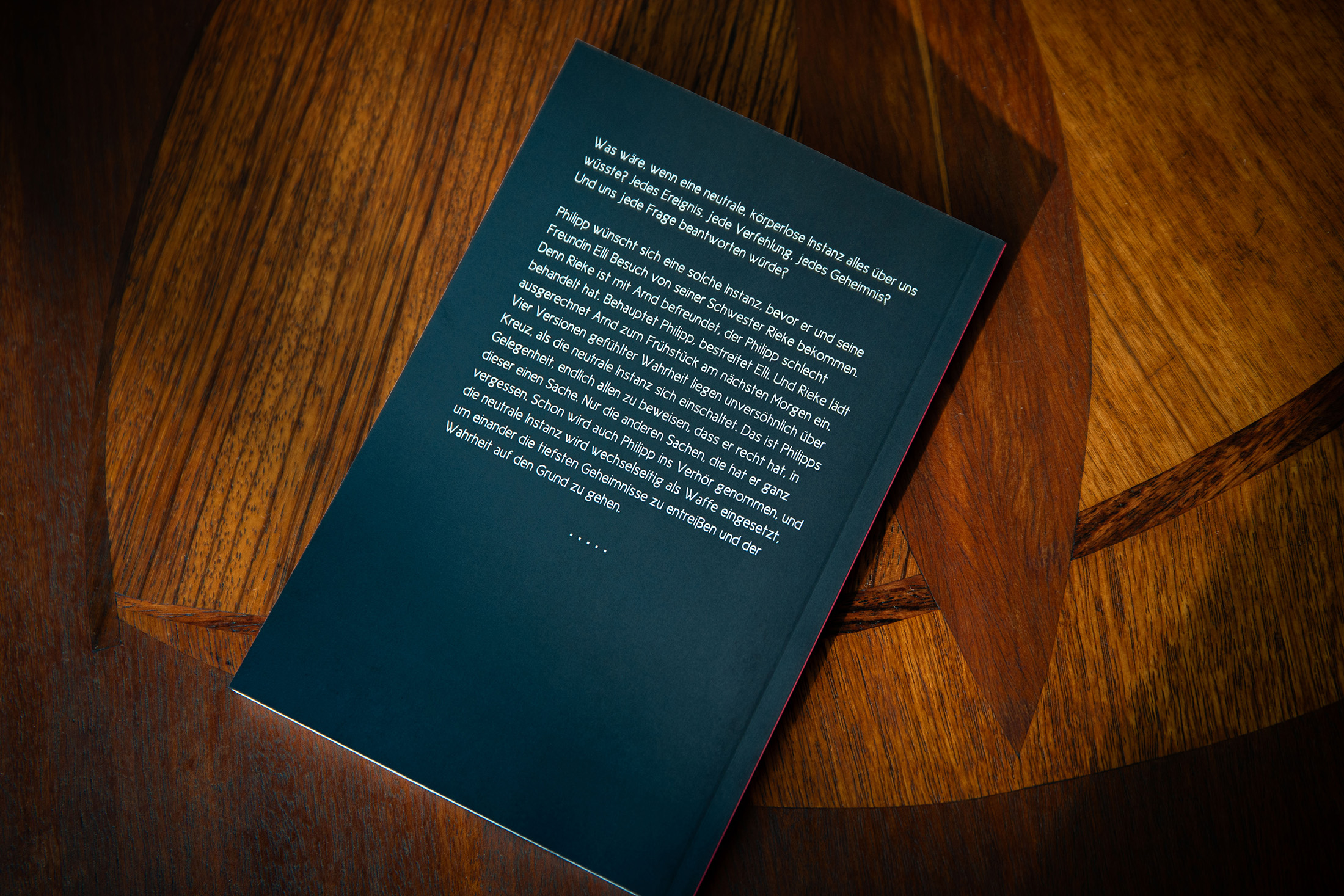 Philipp wünscht sich eine solche Instanz, bevor er und seine Freundin Elli Besuch von seiner Schwester Rieke bekommen. Denn Rieke ist mit Arnd befreundet, der Philipp schlecht behandelt hat. Behauptet Philipp, bestreitet Elli. Und Rieke lädt ausgerechnet Arnd zum Frühstück am nächsten Morgen ein. Vier Versionen gefühlter Wahrheit liegen unversöhnlich über Kreuz, als die neutrale Instanz sich einschaltet. Das ist Philipps Gelegenheit, endlich allen zu beweisen, dass er recht hat, in dieser einen Sache. Nur die anderen Sachen, die hat er ganz vergessen. Schon wird auch Philipp ins Verhör genommen, und die neutrale Instanz wird wechselseitig als Waffe eingesetzt, um einander die tiefsten Geheimnisse zu entreißen und der Wahrheit auf den Grund zu gehen.